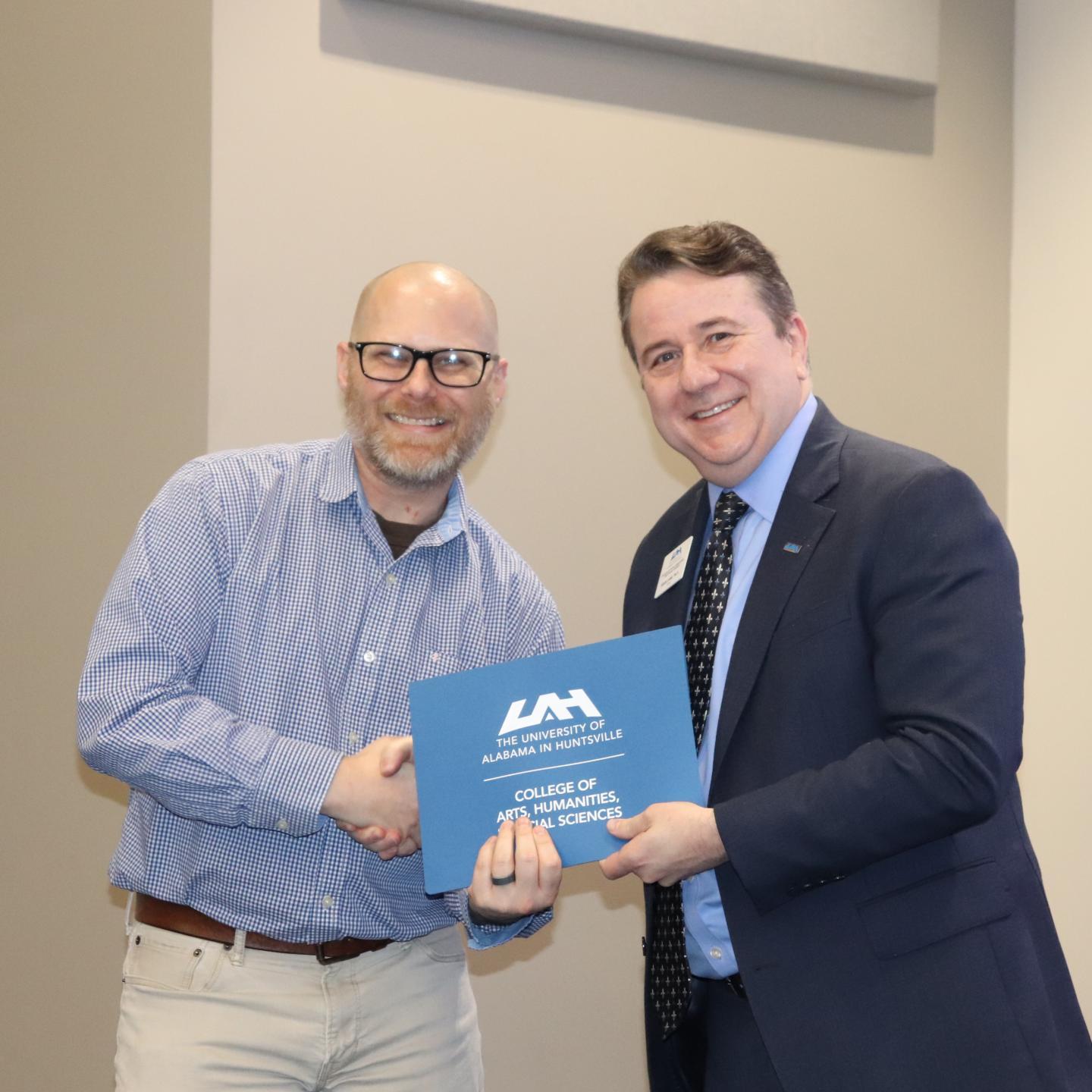 Dr. Sims often taught highly sought after courses in the sociology of race and ethnicity, gender, and sexuality, and anchored the department’s course in sociological research methods. An active mentor of students, Sims won funding for five RCEU students while at UAH, and won the Distinguished Contributions to Teaching Award from the Southern Sociological Society in 2021, as well as the MLK Award from the UAH Minority Graduate Student Association in 2022.