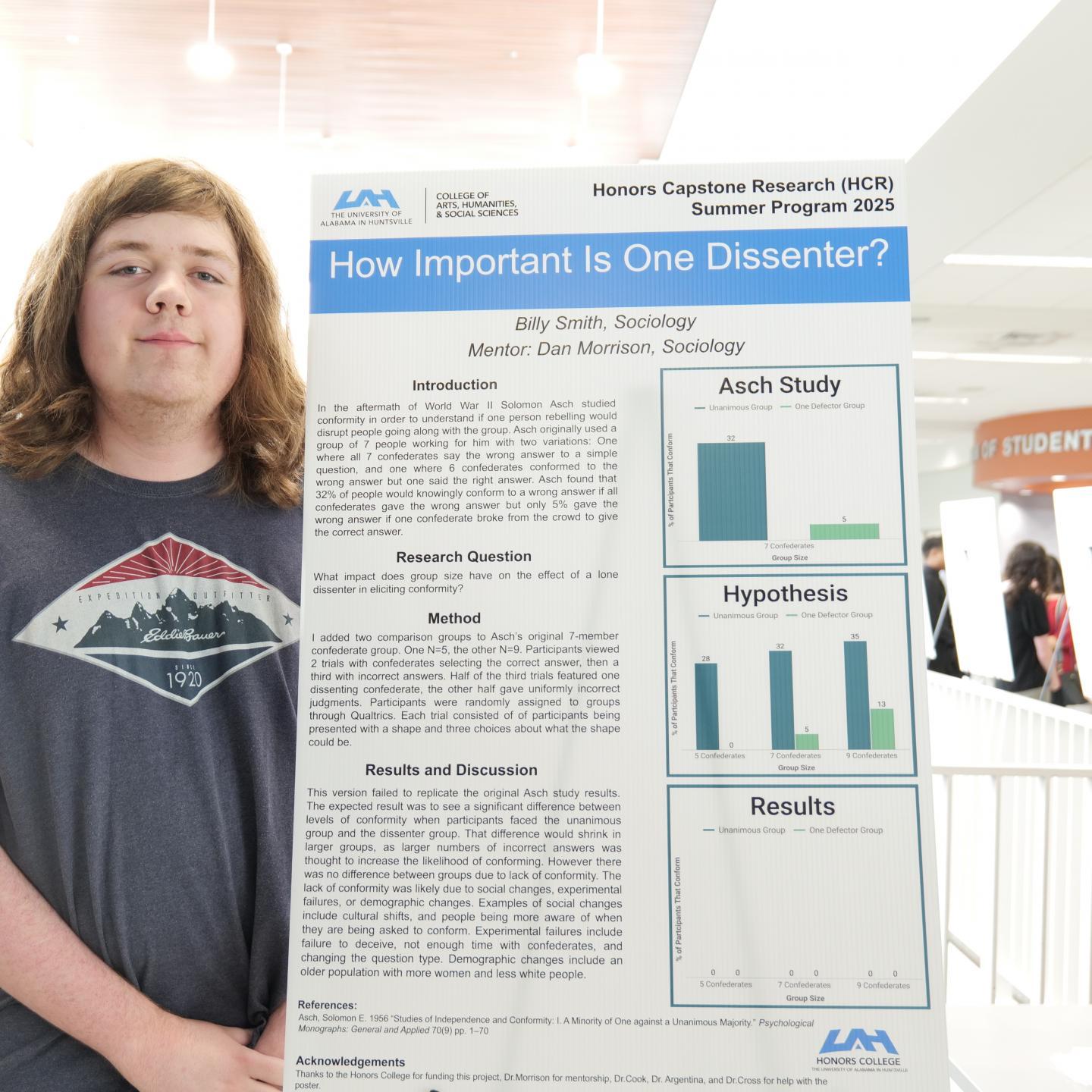 As a sociology major, I am proud of the research that I had the honor of conducting. Throughout my time at UAH, I conducted three different sociological research projects: 1) the reasons for anti-vaccination beliefs, 2) the influence of the “American Dream” on perceptions of poverty, and 3) Project DIAL. I am deeply proud of the work and effort that I put forth into each of these projects. These projects all pertain to issues I hold closely to my heart, and I am grateful that I was able to translate this compassion into empirical and scientific findings. I am fortunate to have gotten the chance to conduct this research alongside mentors who never faltered in their support for me and always pushed me to reach my full potential, both as a student and as a researcher. The advice that I would give to future sociology students is to go after the opportunities that you want. Whether it is a research project you are passionate about or an internship you would love to have, believe in your abilities to succeed. Everything you want is on the other side of fear. Reach out to those around you if you need help: there is never any shame in asking for help.