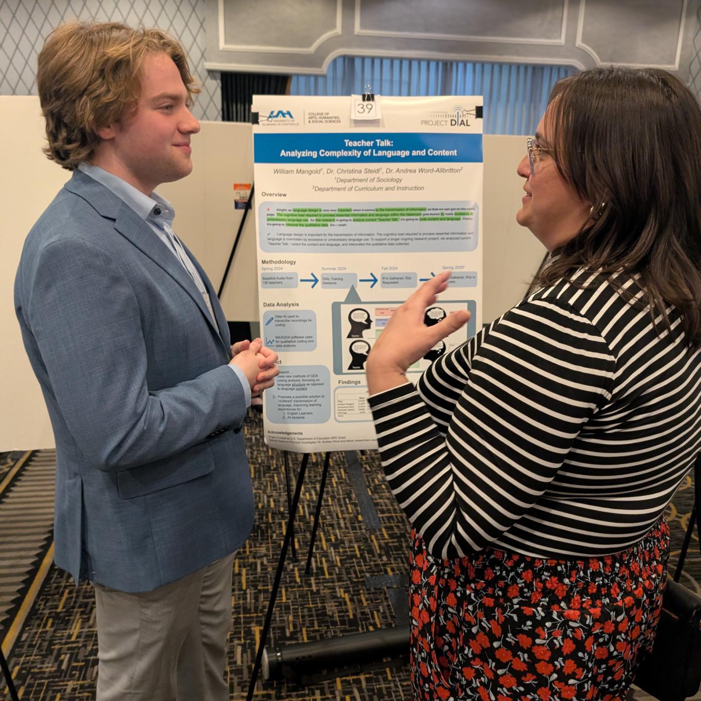 Dr. Christina Steidl continues her work as Co-P.I. and Director of Research for Project DIAL (Designing Instruction for Academic Literacies), a collaboration with colleagues in the College of Education, Sport, and Human Sciences. Project DIAL trains teachers to analyze and intentionally design their instructional talk to reduce the cognitive load associated with language processing—in order to optimize the cognitive load available for content processing. Several Sociology majors, including Will Mangold and Zoe Johnson, are working as undergraduate research assistants with Project DIAL, where they are learning qualitative coding of teaching transcripts, as well as data cleaning and statistical analysis. Dr. Steidl is also part of a multi-university team exploring veterans career and educational trajectories. With multiple published papers and others in process, this team has found that military service may influence the trajectories of male and female veterans differently. For example, new analyses show that G.I. Bill Benefits substantially increase the rate of male veterans who go on to earn a bachelor's degree, whereas female veterans are more likely to go on to earn a bachelor's degree regardless of G.I. Benefits. Obviously, these types of analysis have implications for public policy effectiveness and implementation.