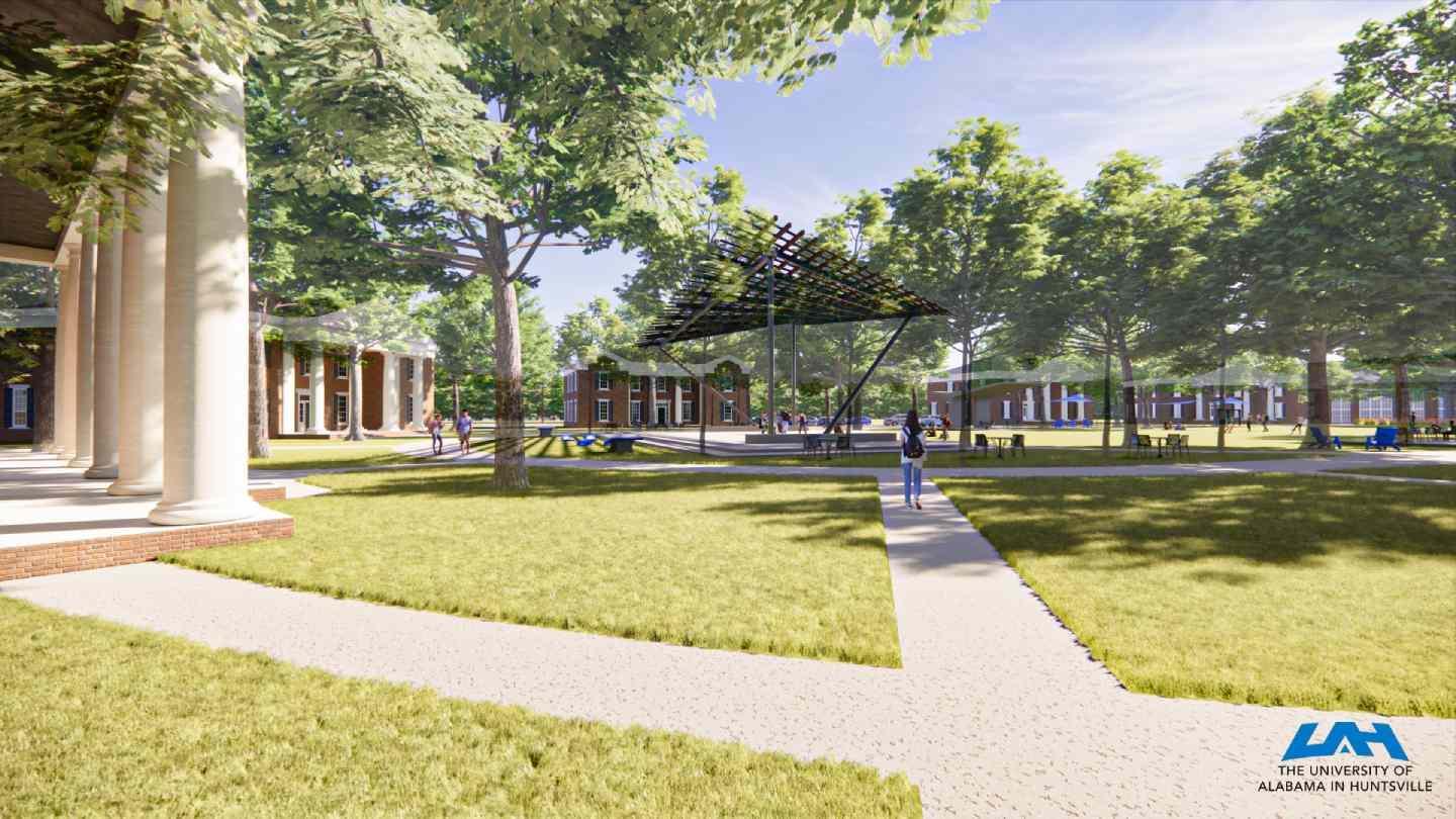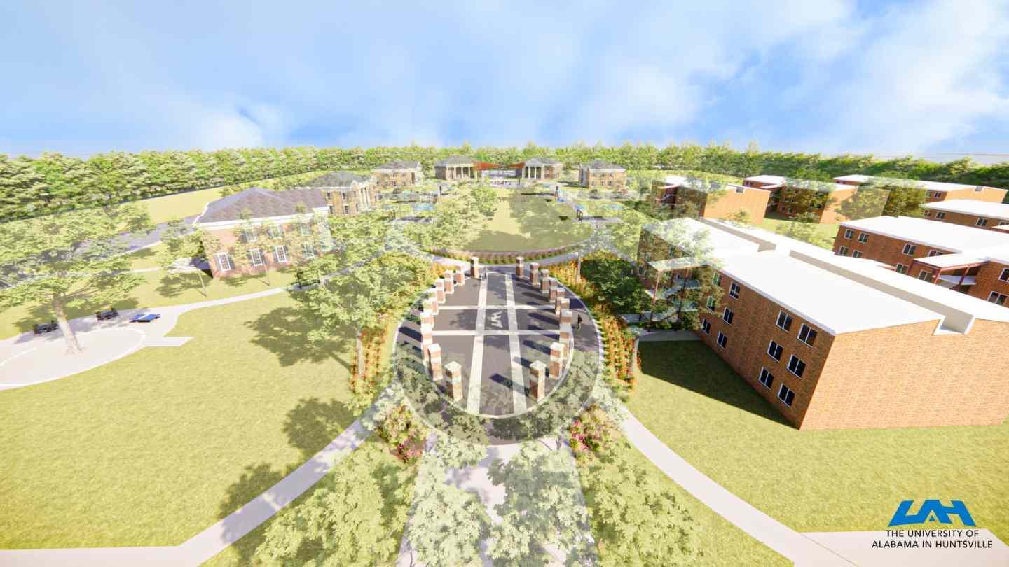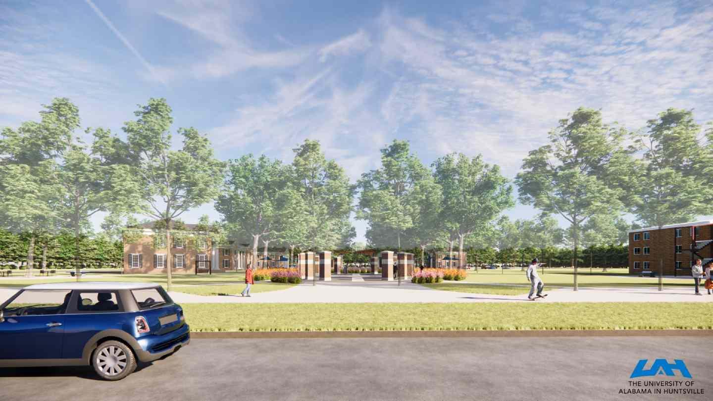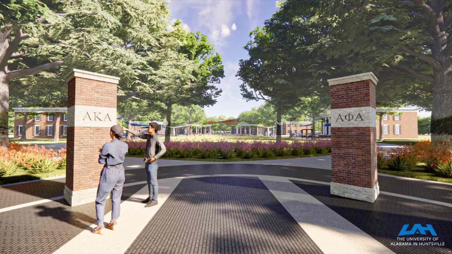 The University of Alabama in Huntsville (UAH) is engaging in a transformational project on Greek Row. Constructed in 2006, UAH added six sorority and fraternity houses to the campus, made possible by generous gifts from Mark and Linda Smith and Jim and Susie Hudson. Today, sorority and fraternity life continues to grow at UAH with 15 chapters located on the campus. Alumni from many organizations have asked for monuments and other features to be added to the campus to explain the vibrant Greek life community. Now, it is time to expand community engagement opportunities for all students using this area.