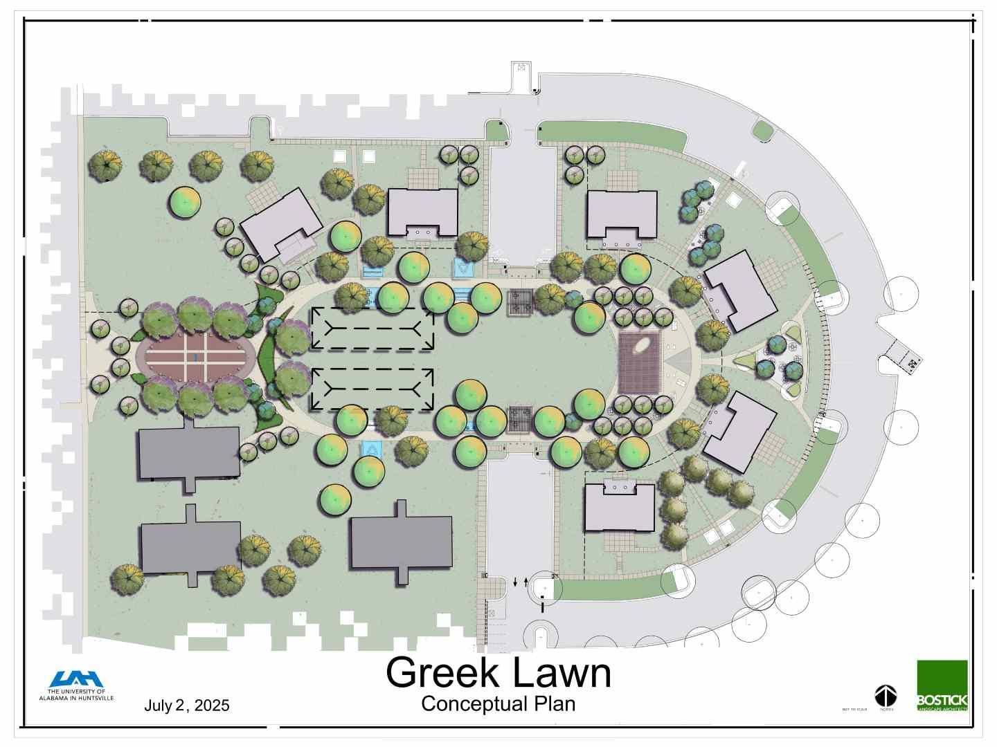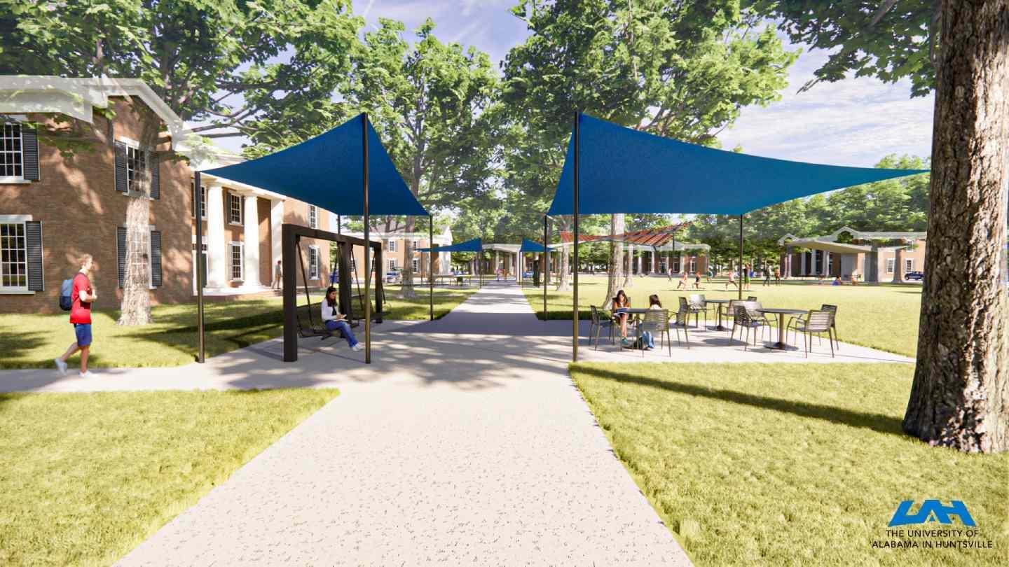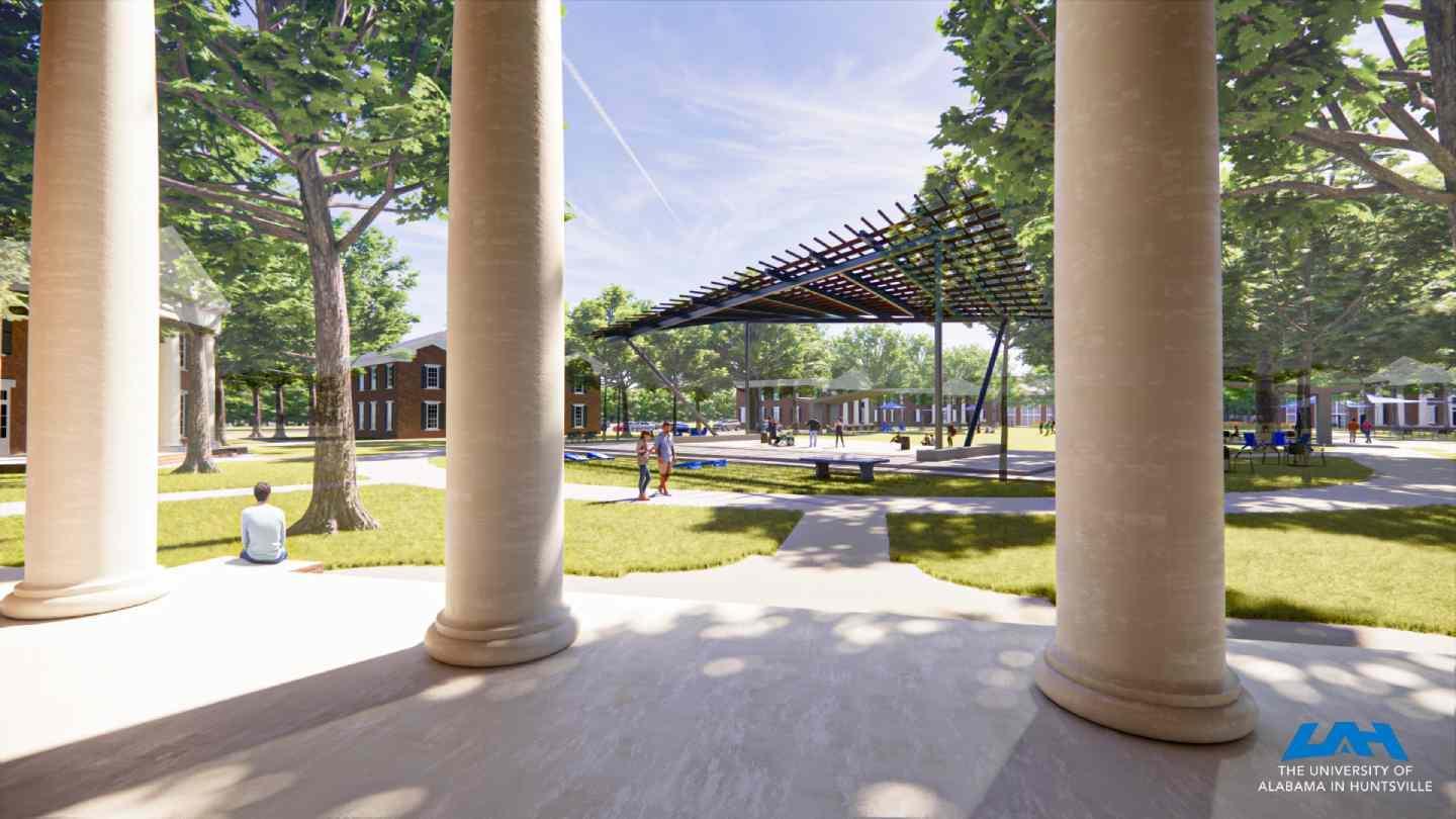 The University of Alabama in Huntsville (UAH) is engaging in a transformational project on Greek Row. Constructed in 2006, UAH added six sorority and fraternity houses to the campus, made possible by generous gifts from Mark and Linda Smith and Jim and Susie Hudson. Today, sorority and fraternity life continues to grow at UAH with 15 chapters located on the campus. Alumni from many organizations have asked for monuments and other features to be added to the campus to explain the vibrant Greek life community. Now, it is time to expand community engagement opportunities for all students using this area.