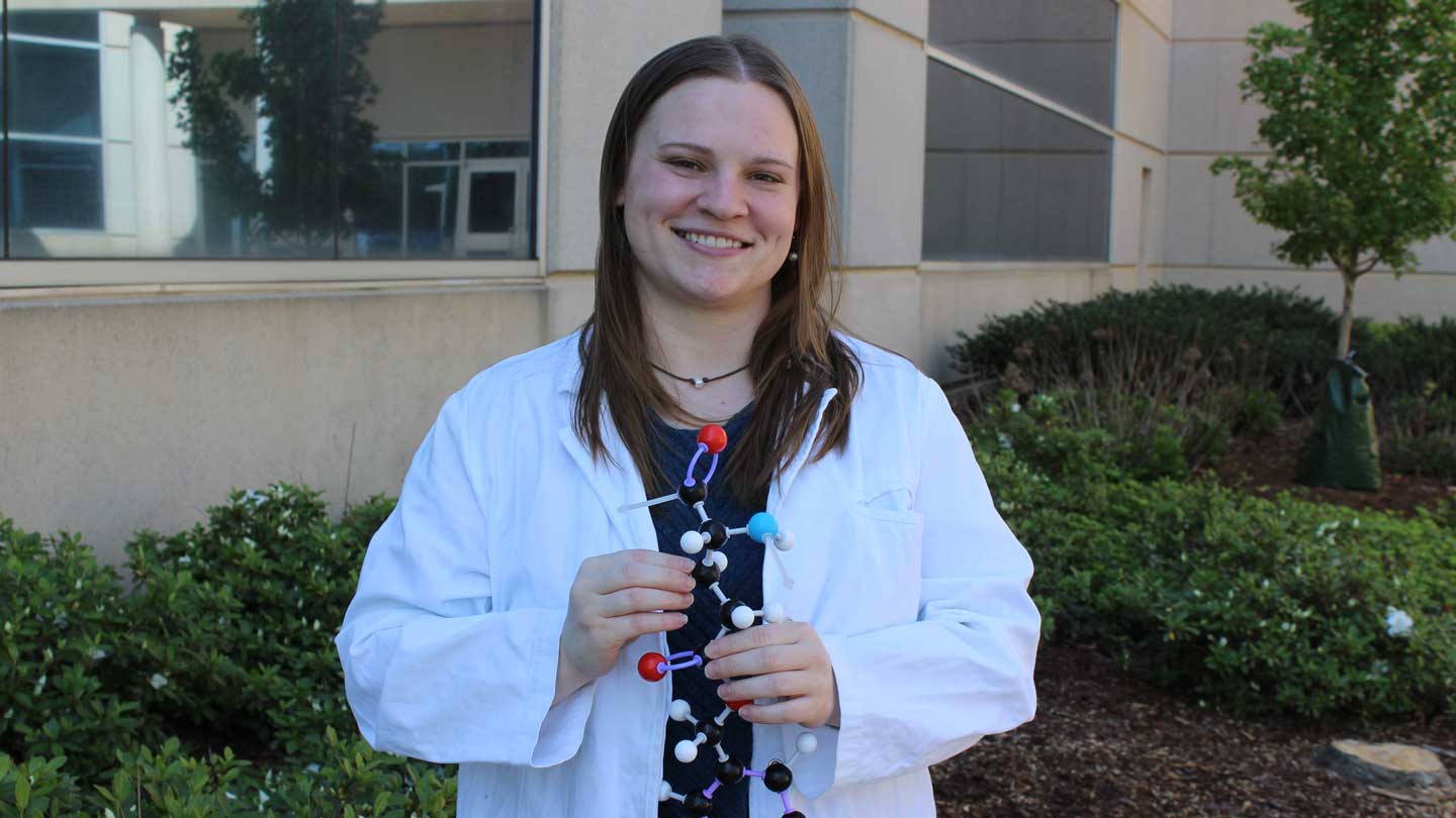 That model kit was another piece of good professorial advice. She received the tip while working on her bachelor’s in chemistry at The University of North Alabama.